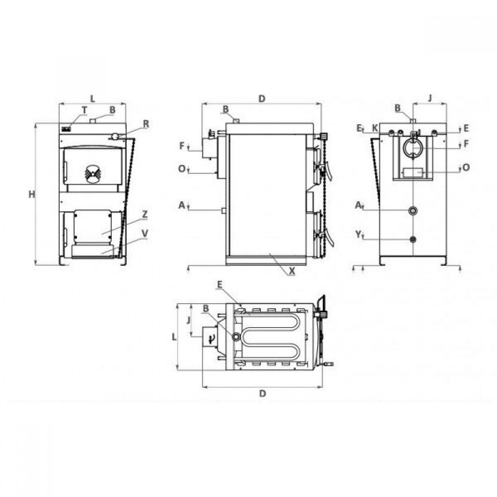 Kako bi se povećala izmjena topline, površina komore za izgaranje je rebrasta i dizajnirana za troprolazni protok dimnih plinova. Plašt u potpunosti obavija ložište za maksimalno iskorištenje topline. Tijelo kotla je izolirano od vanjskih uvjeta vunom otpornom na visoke temperature debljine 50 mm. Ova serija koristi termostatski regulator propuha koji otvara ili zatvara zaklopku na donjim vratima, ovisno o količini zraka potrebnoj za proces gorenja.