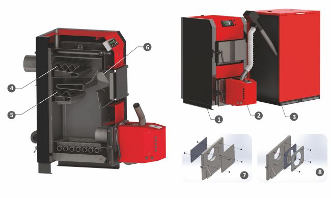 - Kotao je posebno prilagođen za izgaranje peleta s dodatnim elementima poput turbulatora i gornjih zaštitnih vrata